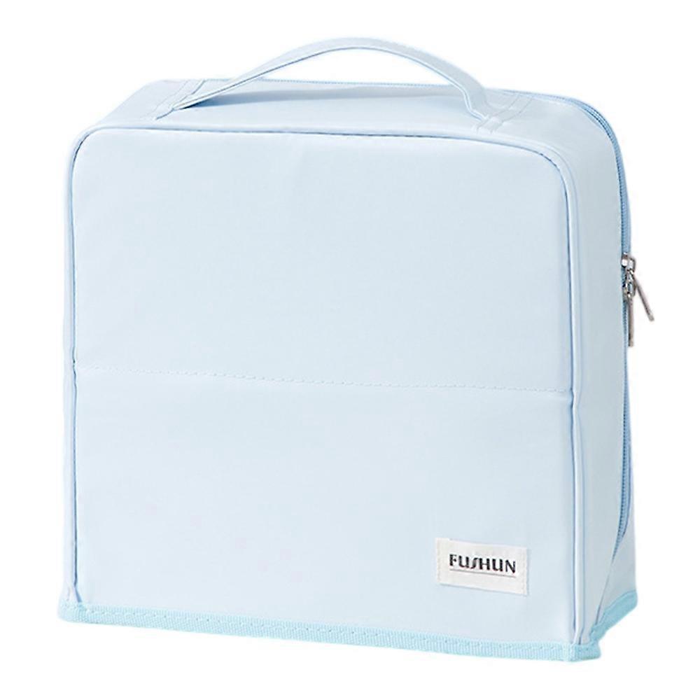Travel Makeup Bag Large Capacity Waterproof PU Cosmetic Storage Bag with Mirror - Sky Blue
