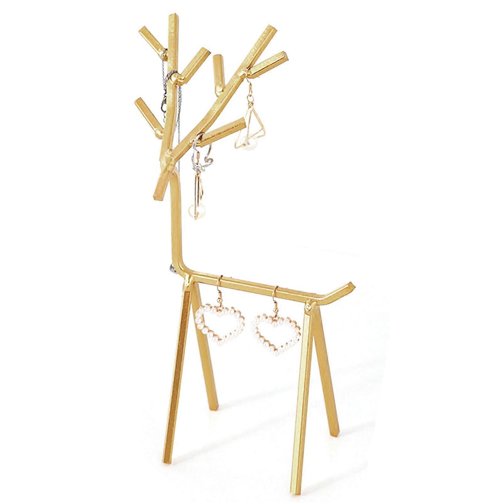 Simple Golden Iron Geometric Deer Jewelry Stand 15x7x23cm Desktop Organizer