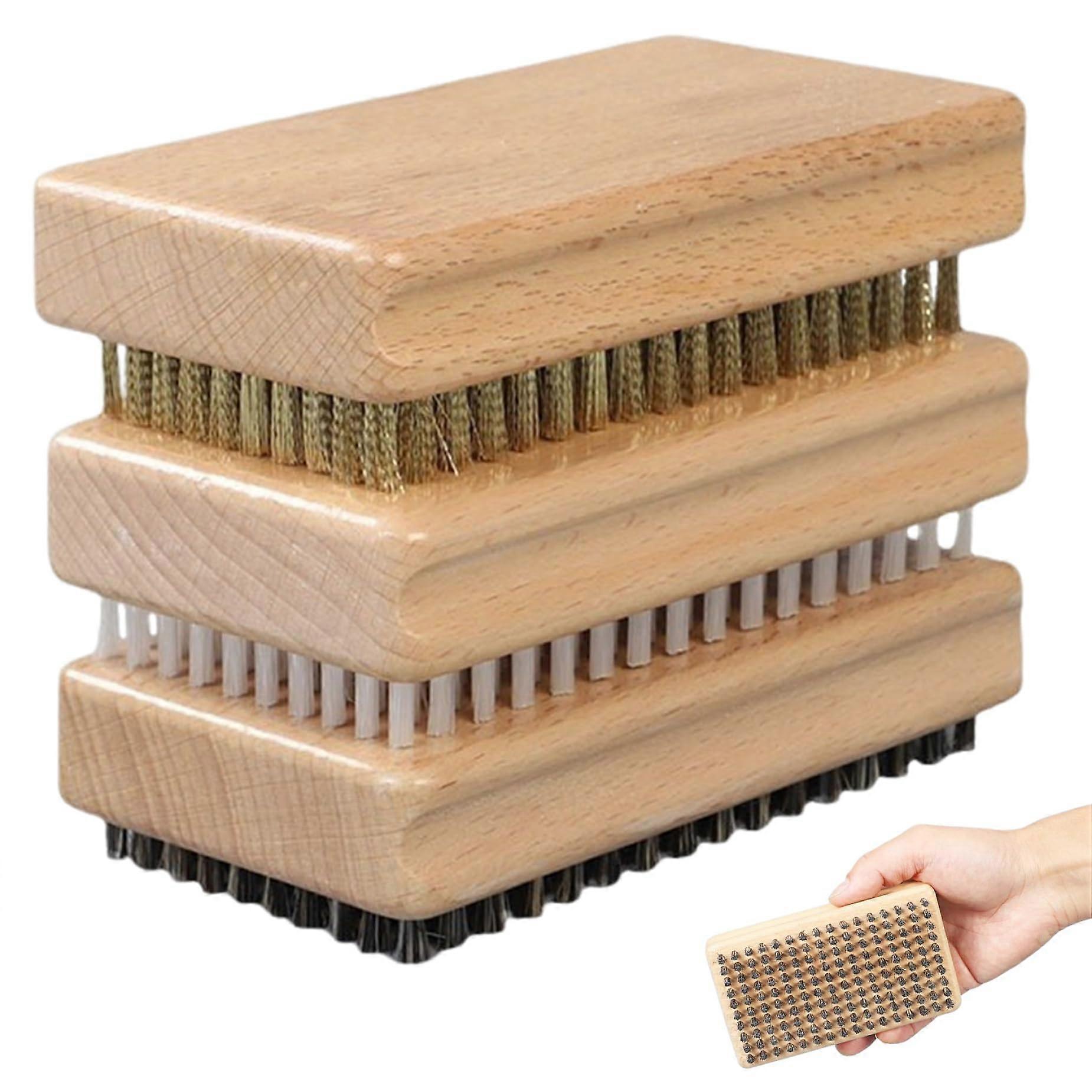 Snowboard Wax Brush Kit 3Pcs Wooden Set with Nylon, Horse Hair, Brass Brushes for Ski Waxing, Stain Removal, and Polishing