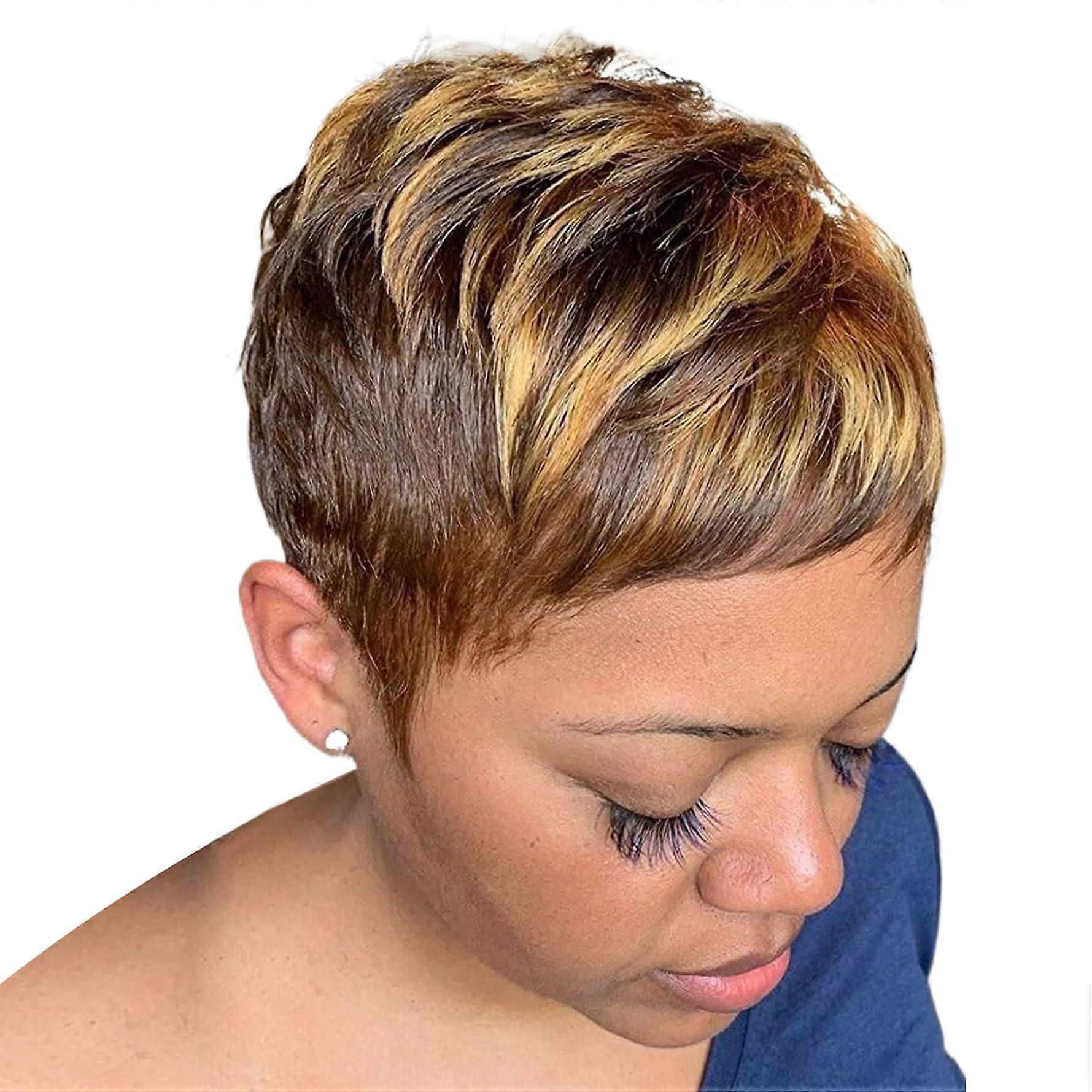 Short Pixie Cut Wigs for Black Women, 10 Inch Curly Layered Wavy Hairstyle with Bangs and Hairnet