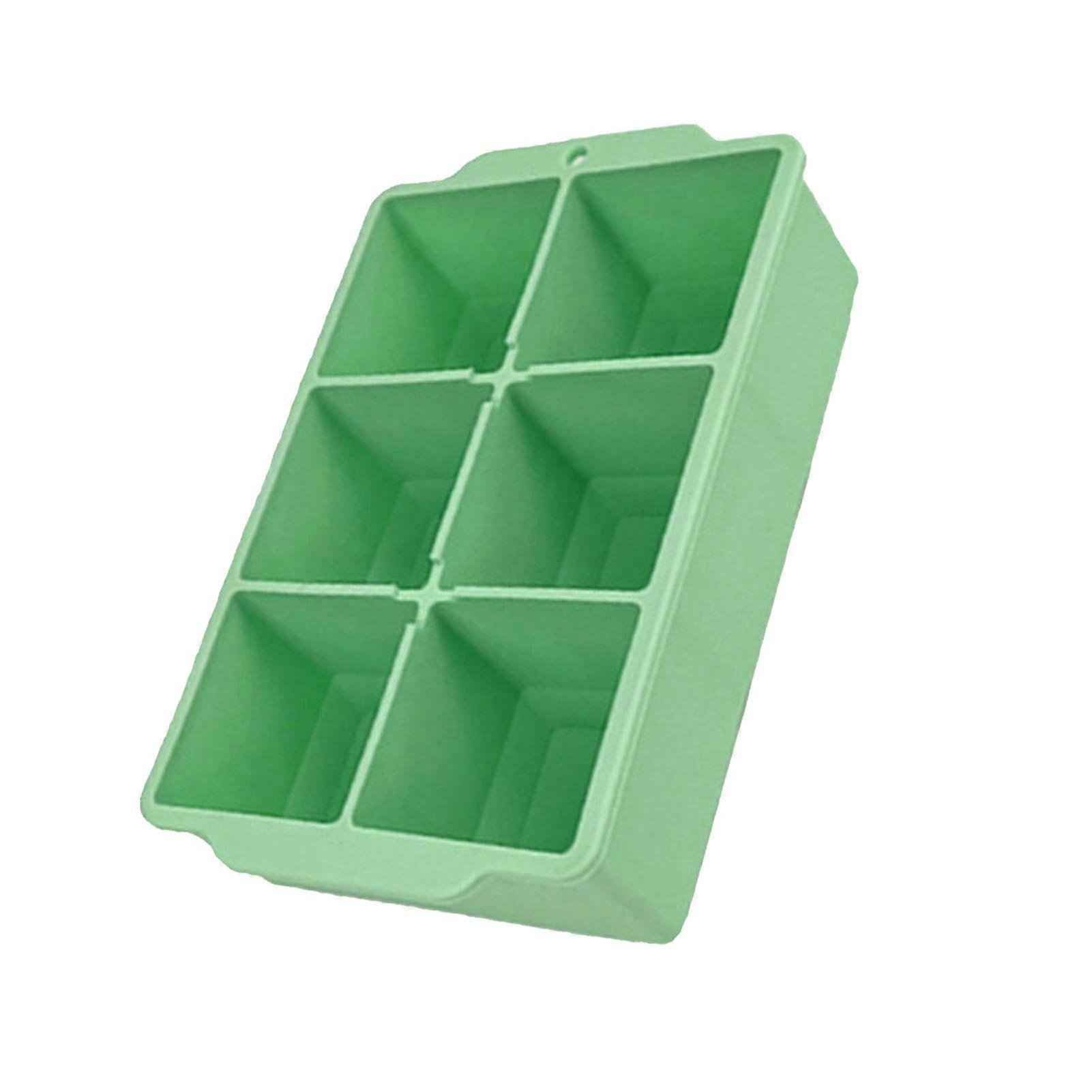 Food Grade Silicone Ice Cube Tray with Lid, 6 Cubes, Green