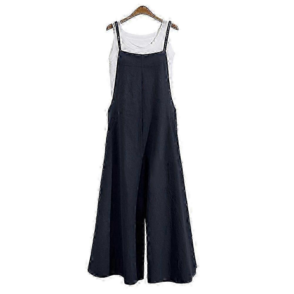 Casual Loose Jumpsuit Women Summer Solid Cotton Linen Straps Wide Leg Pants Dungaree Bib Overalls Sleeveless Oversized Jumpsuits Cs