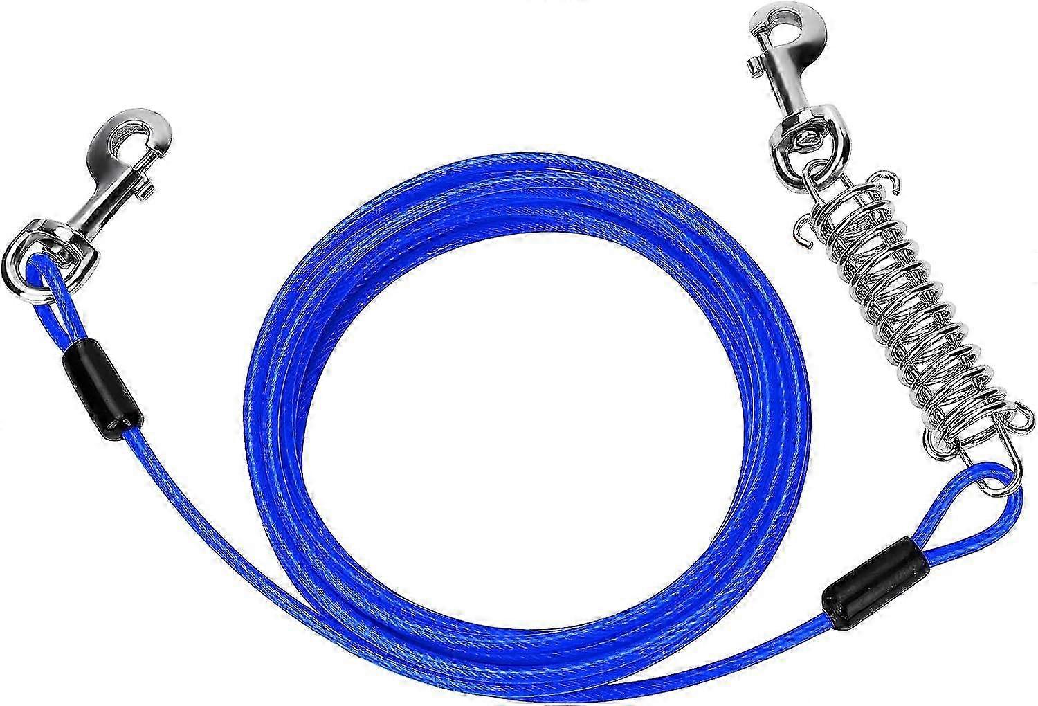 20ft Blue Dog Tie Down Cable with Spring & Metal Swivel Hooks, Pet Lead