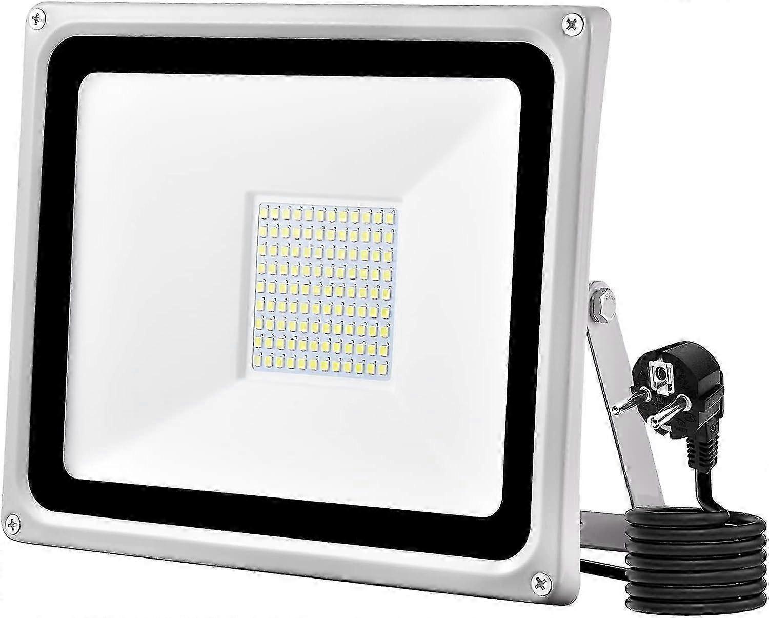 100W Outdoor LED Flood Light with Plug, 10000LM Spotlight IP65 Waterproof, Cool White 6500K for Patio Garden Terrace Security