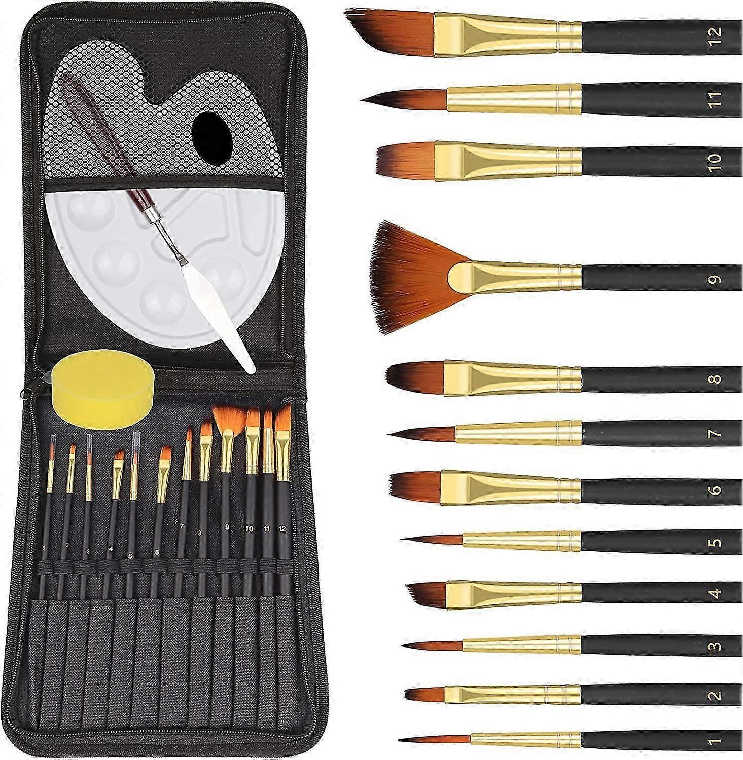 KXJ 15-Piece Acrylic Brush Set for Kids, Watercolor & Oil Paint with Mixing Palette & Sponge