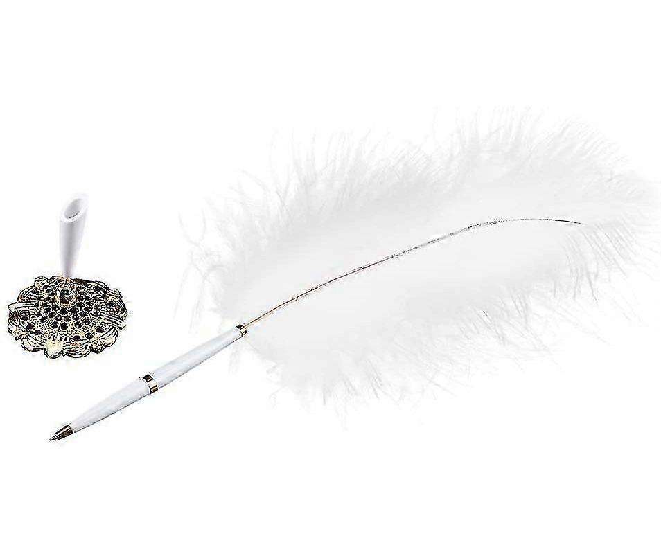 KXJ Ostrich Feather Quill Pen Deluxe Swan Writing Pen with Metal Holder for Wedding Signing