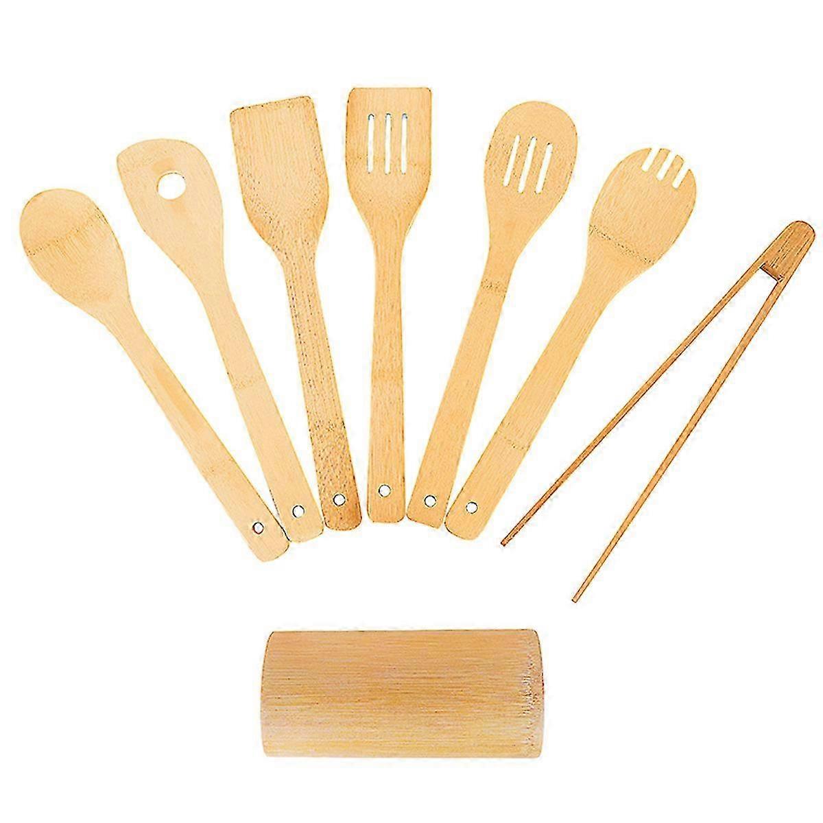 KXJ 8-Piece Bamboo Wooden Spoon Set, Non-Stick Cookware Essential Spatula