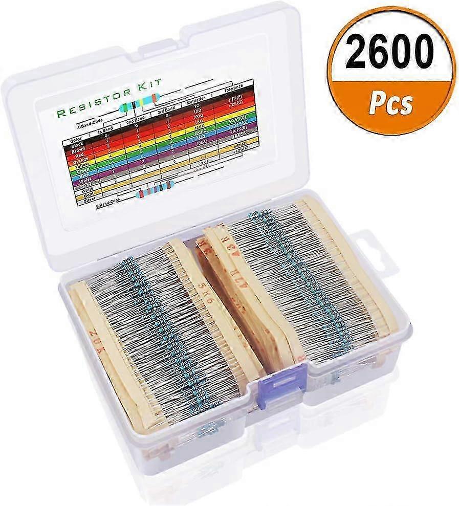 Metal Film Resistor Kit 2600pcs 130 Values 1% Tolerance 1 Ohm-3M Ohm 1/4W with Storage Box