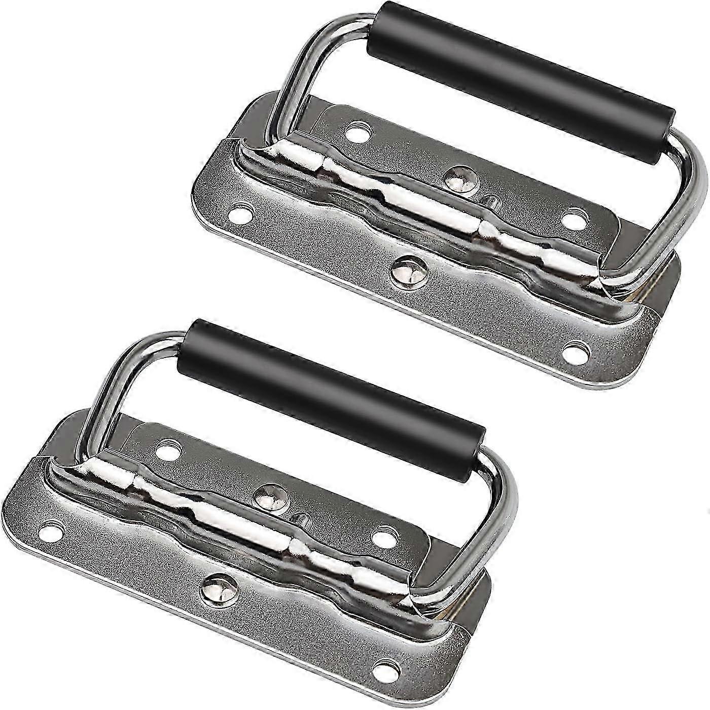 2-Pack Spring Folding Pull Handles, Silver Stainless Steel with Insulated Rubber Grip for Tool Chests & Drawers