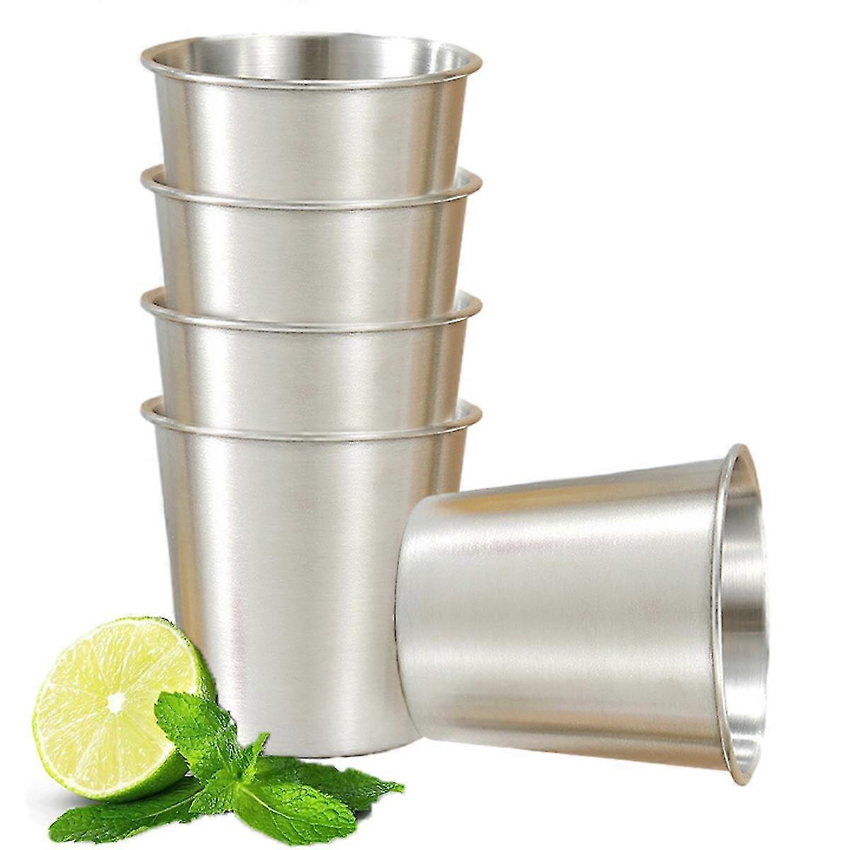 5-piece set Color: Silver Material: stainless steel Size: 200ML/260ML/300ML/350ML Weight: 44g/51g/60g/71g 1.5 Piece Stainless Steel Drinking Mug Set for everyday home and outdoor use. These durable stainless steel cups are perfect for drinking ice water, juice, iced tea, milk, and even beer and cocktails! 2.Made of stainless steel. The rims of the mugs are rolled for extra durability and comfort with every sip. These heavy-duty metal cups are rust and dent resistant and won't leave unsightly fingerprints. 3.The sturdy construction of metal pint glasses makes them a great companion by pools and beaches as well as on camping, boating and hunting trips! Our space-saving steel cups are nestable, saving cabinet storage space and easy to transport in lunch bags and picnic baskets! 4. stainless steel cups taste fresher than plastic cups! Stainless steel is free of BPA and harmful toxins. 5.This set makes a great gift for Christmas, holidays and special occasions! Metal drinking cups are easy to hand wash and dishwasher safe!
