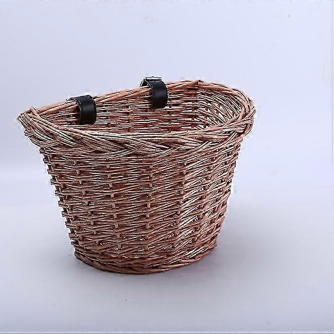 Wicker D-Shaped Bike Basket Portable Hand-Woven Shopping Basket Folk Craftsmanship
