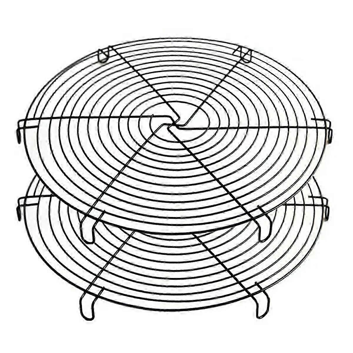 2pcs Round Iron Cooking Rack for Baking, Steaming, Cooling, Fits Air Fryer, Stockpot, Pressure Cooker, Black