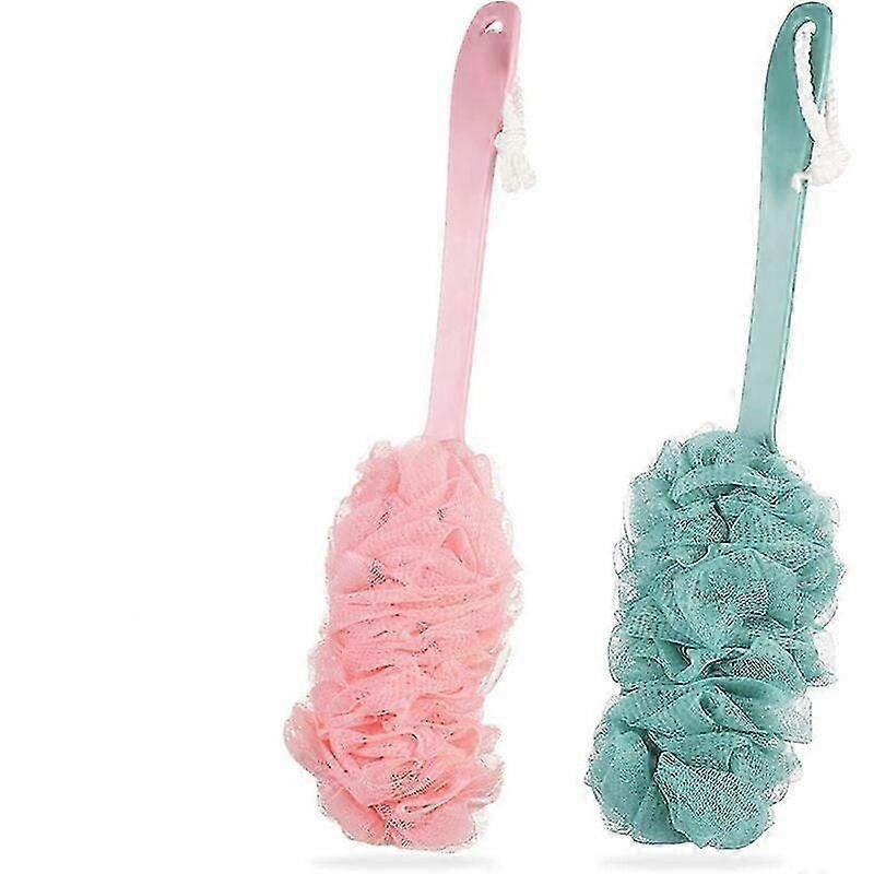 2-Pack Long Handle Bath Brushes, Frosted Exfoliating Back Scrubber with Massage for Men & Women