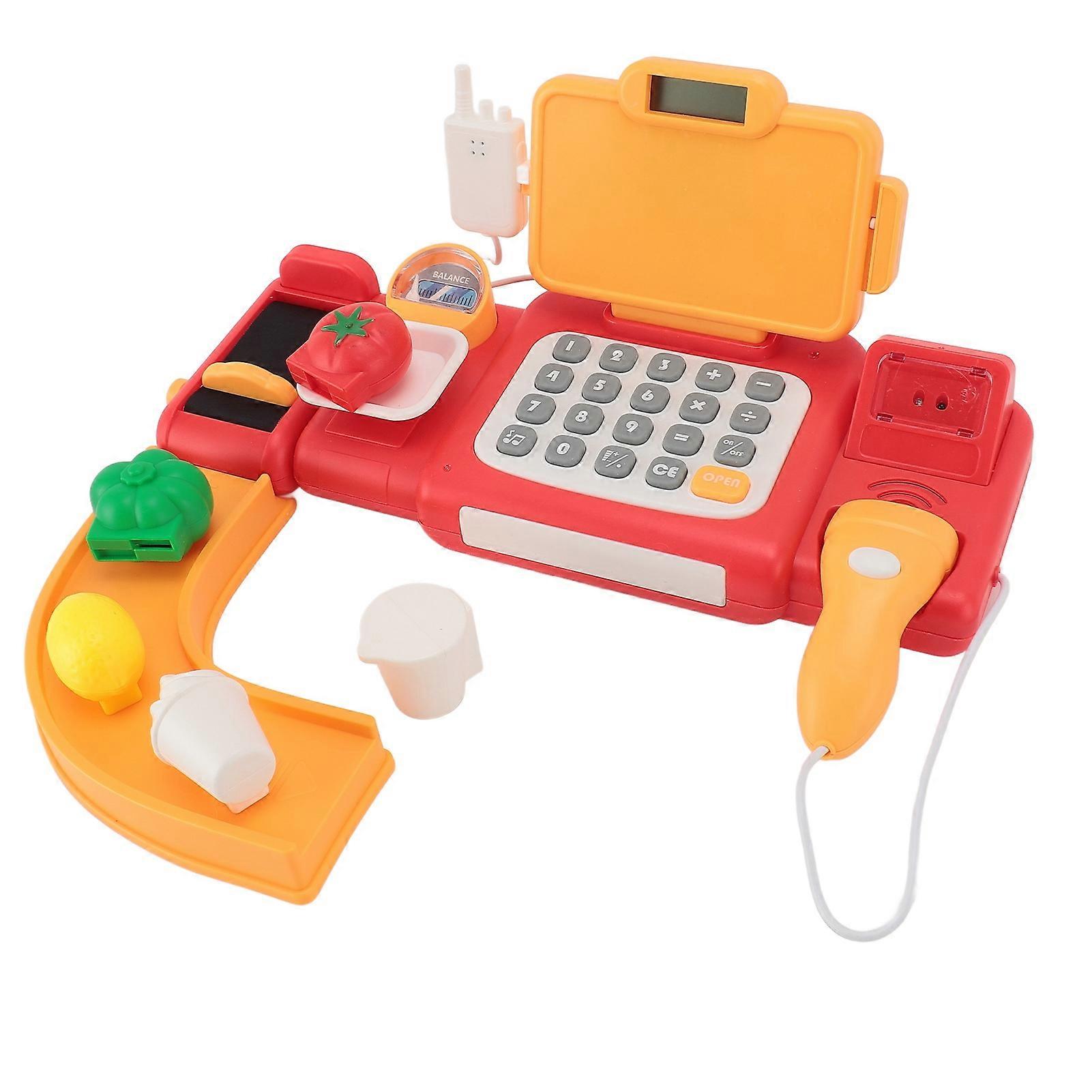 Cash Register Toy for Kids with Checkout Scanner Play Food Set Play Calculator Credit Card Reader Voice Broadcast Pretend Cash Register Red Item Type: Cash Register Toy Material: Plastic Battery: 3 x AA batteries (not included)