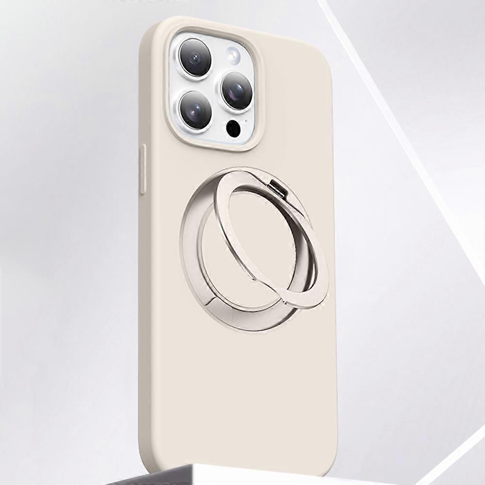 For iPhone 15 Pro Case Rotating Kickstand Liquid Silicone+PC Phone Cover - Antique White