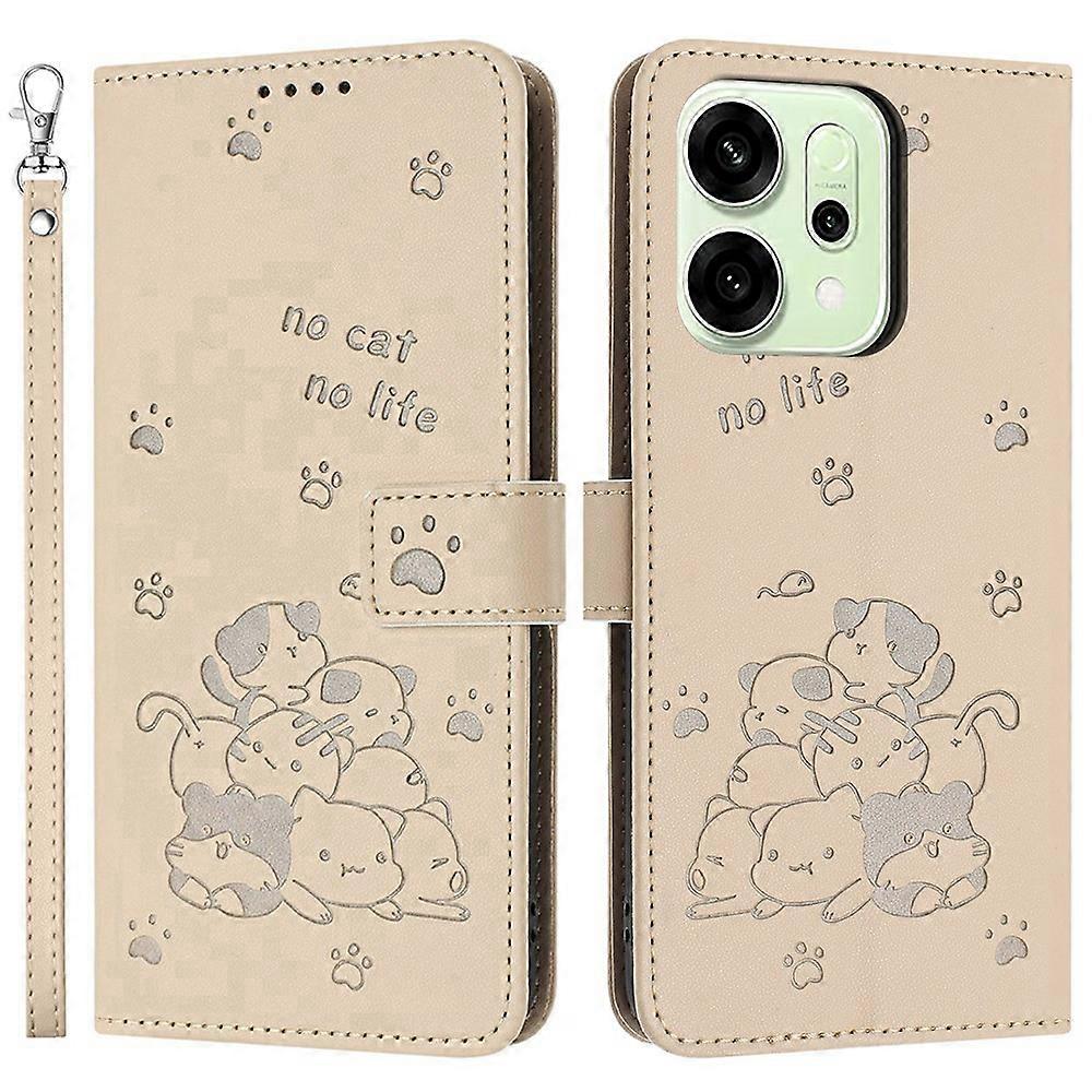 For Oppo Reno14 Pro 5G (Global) Wallet Case Cats Imprint Leather Phone Cover with Strap - Beige