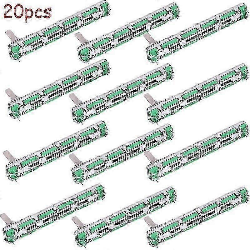 20pcs 75mm Mixer Fader B10K Double Straight Slide Potentiometer Lotgreen Silver SZRH A-GB