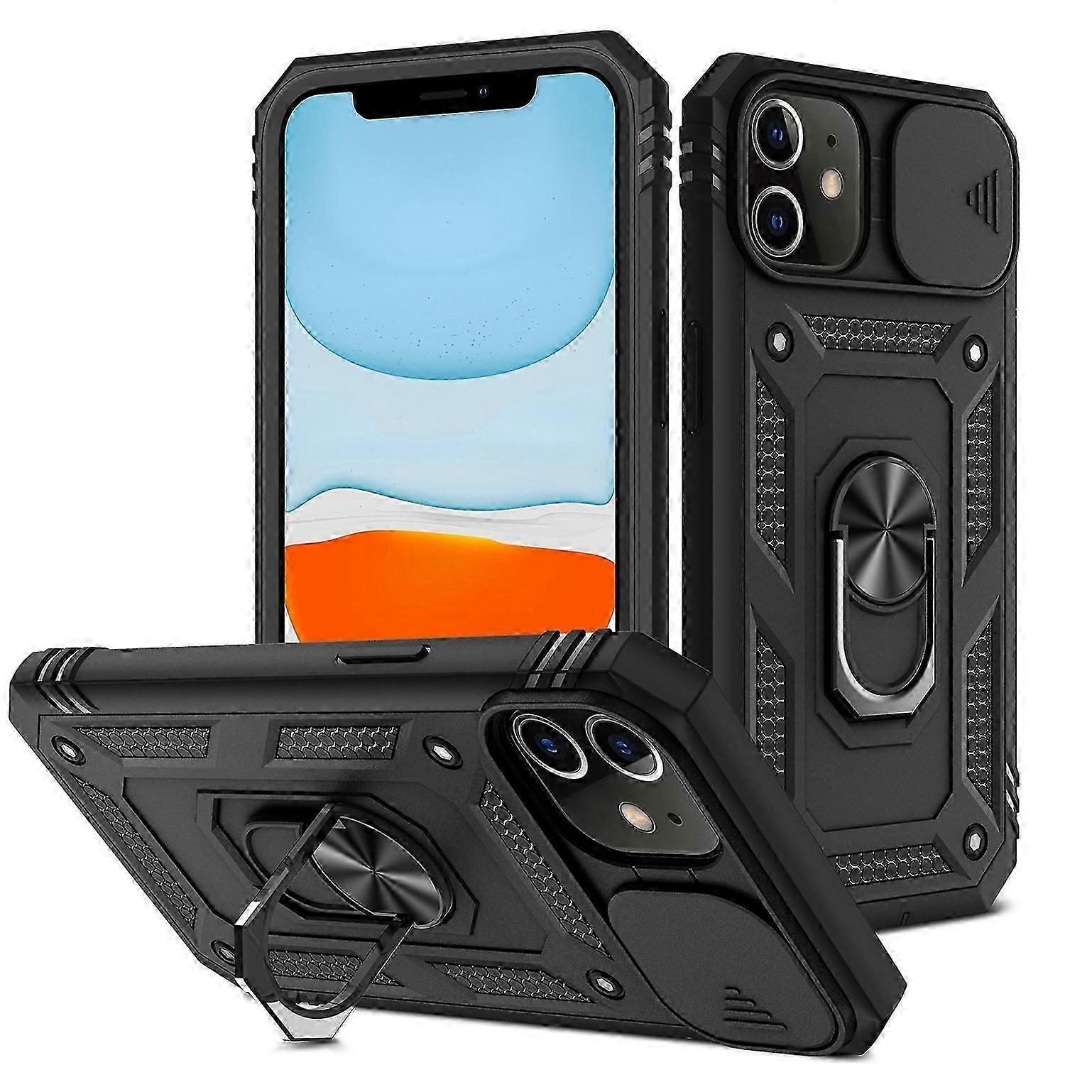 Sliding Camera Cover Design TPU and PC Protective Case with 360 Degree Rotating Holder Card Slot for iPhone 12 Mini