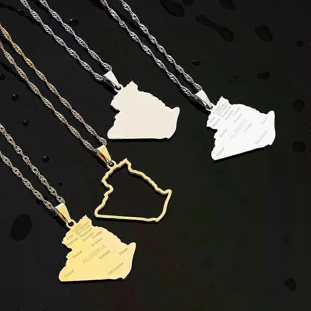 Africa Algeria Map City Pendant Necklace Stainless Steel Men Women Ethnic Maps Jewelry African Gift