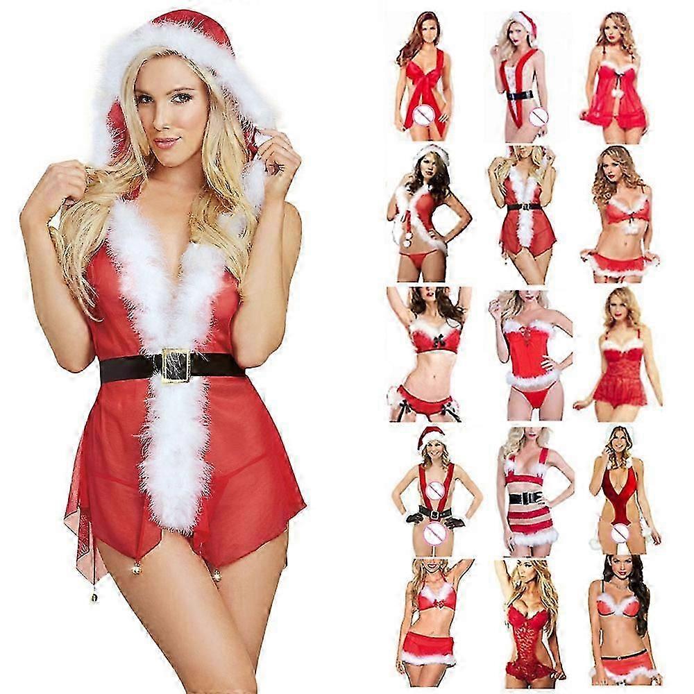 Festive Lace Babydoll Lingerie Set with Santa Hat for Christmas and Cosplay Nights