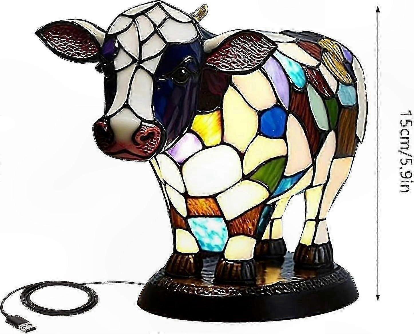 Vintage Animal Design Table Lamp, USB A+C Ports Bedside Lamp, Retro Style Cow Lamp, Perfect Gift for Girls and Moms