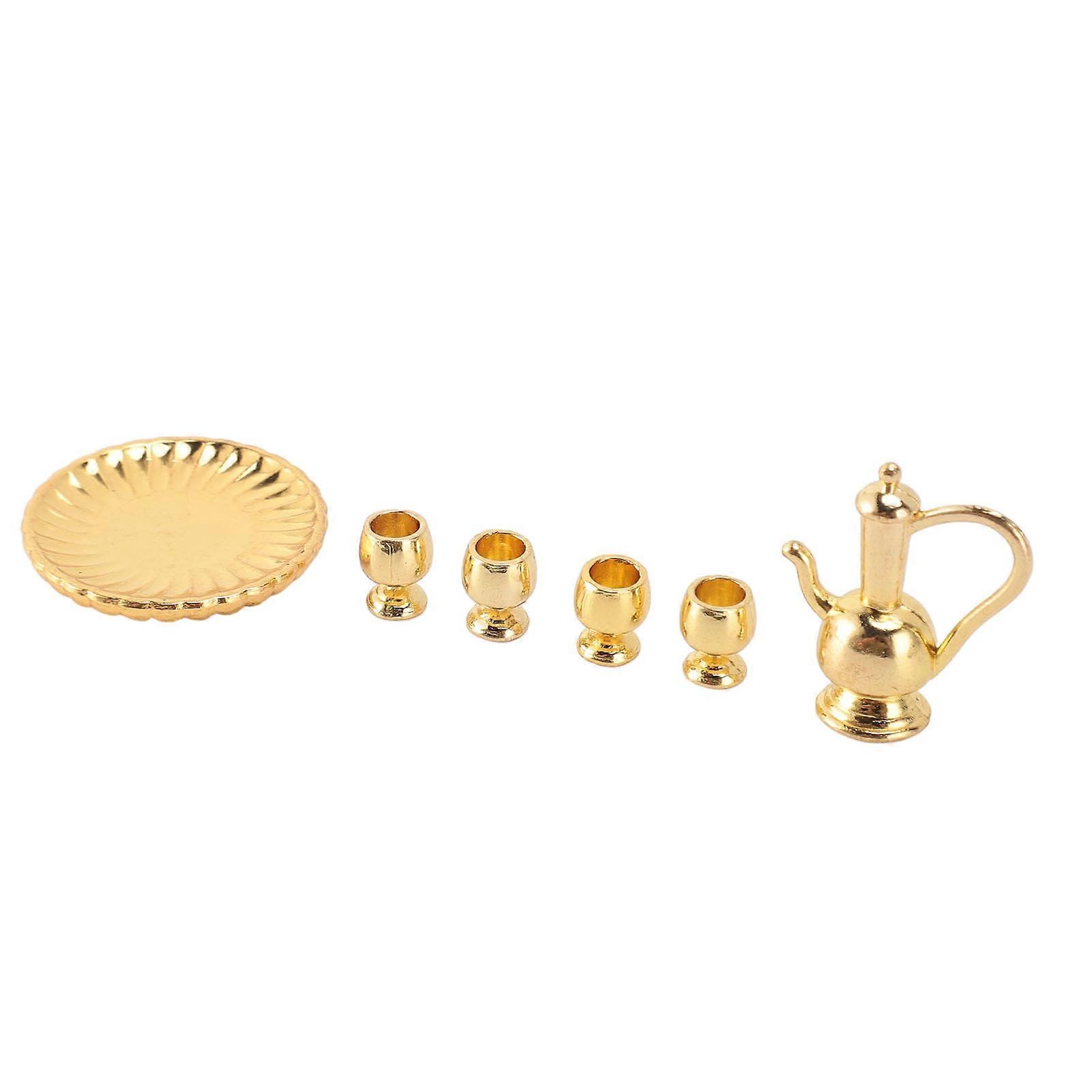 2 Sets 1:12 Dollhouse Tea Cup Set Metal Miniature Tea Cups Gold