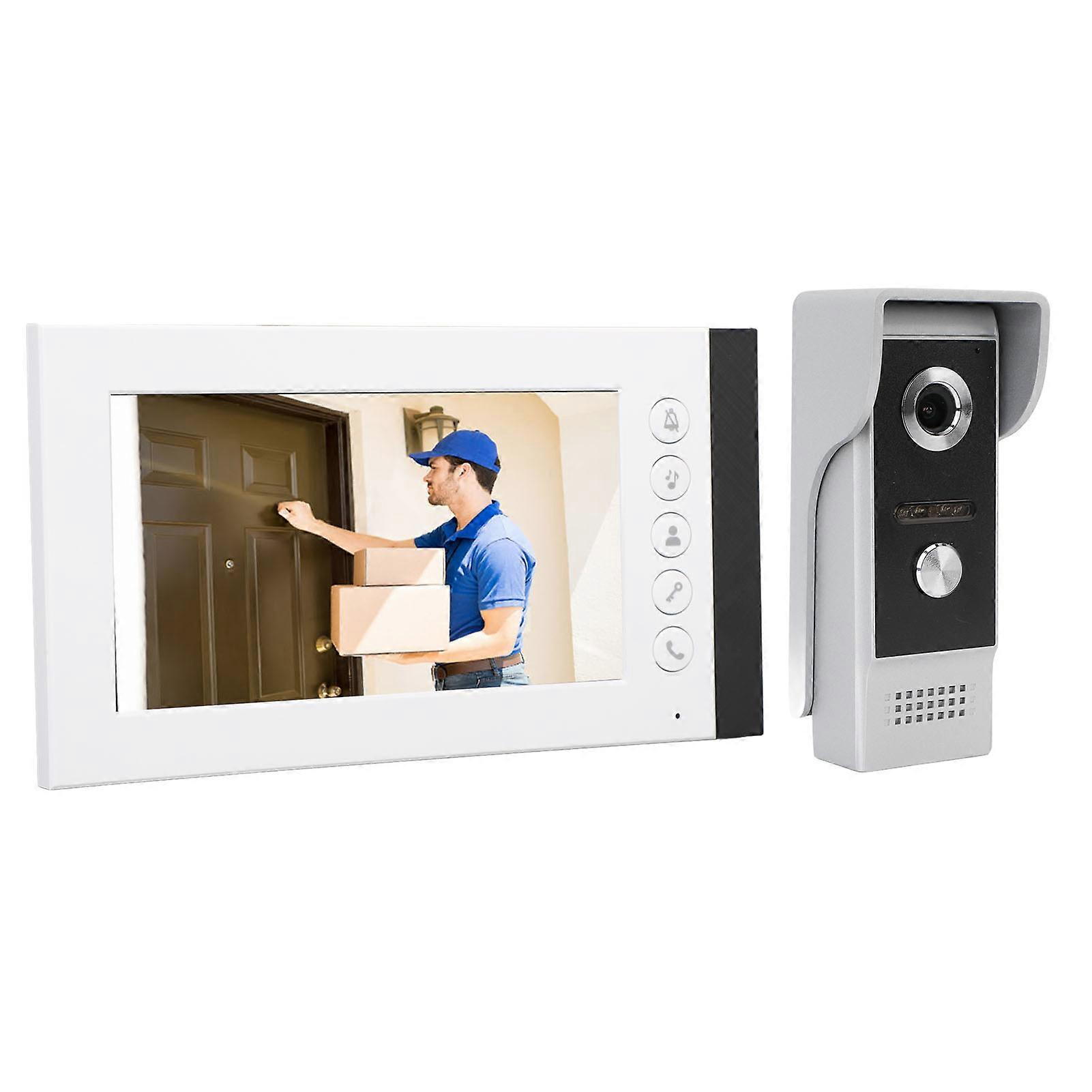7 Inch HD Screen Monitor Video Intercom Doorbell Infrared Night Vision 90 Degree Wide Angle Smart Video Doorbell US Plug Item Type: Smart Video Doorphone Display Screen Size: 7 inch Resolution: 800x480 Power Supply: 15V1.2A Number of Ringtones: 52 Installation Method: Wall mounted Material: ABS Engineering Plastic Size: Approx. 218x123x22mm/8.58x4.84x0.87in Camera: 1.0MP 1/4 inch CMOS, 3.6MM lens Night Vision: 4 LED infrared night lights Night Vision Distance: 0.2-1.5 meters Camera Angle: 90 degrees Operating Temperature Range: -30-+60℃ Housing: Metal + rain cover Installation Method: Surface mounting Size: Approx. 125x50x27mm/4.92x1.97x1.06in Wiring Method: RVV4 core wire connection