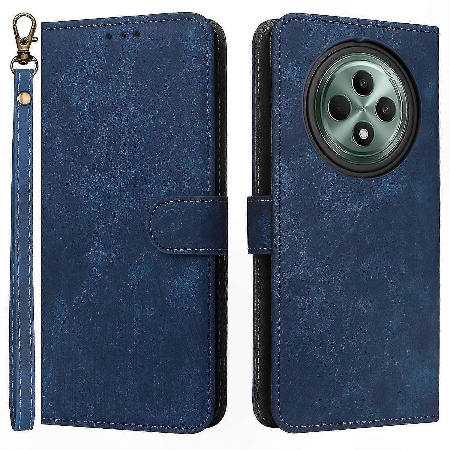 For Oppo Reno12 F 5G/Oppo F27 5G Leather Case RFID Blocking Wallet Phone Cover with Strap - Blue • Premium Material: Made of quality TPU and PU leather, durable, smooth and soft • Functional Storage: Designed with 3 card slots and 1 cash pocket, convenient to store your cards and cash • Handsfree Stand Function: This book folio cover can be folded as a stand for an adjustable viewing angle to free your hand • RFID Blocking Technology: The card slot inside is equipped with RFID blocking technology to help protect your personal information from unauthorized scanning • Magnetic Clasp Design: Durable magnetic clasp provides added security and helps safeguard your phone from daily impacts • Easy to Carry: Comes with a hand strap for convenient portability Package included: • 1 x PU Leather Phone Case • 1 x Hand Strap