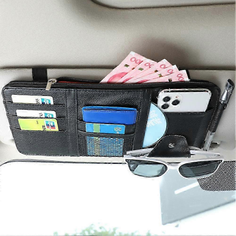 Car Sun Visor Organizer with Storage Pocket for Sunglasses & Glasses - Zippered Clip for Cars, Trucks & SUVs
