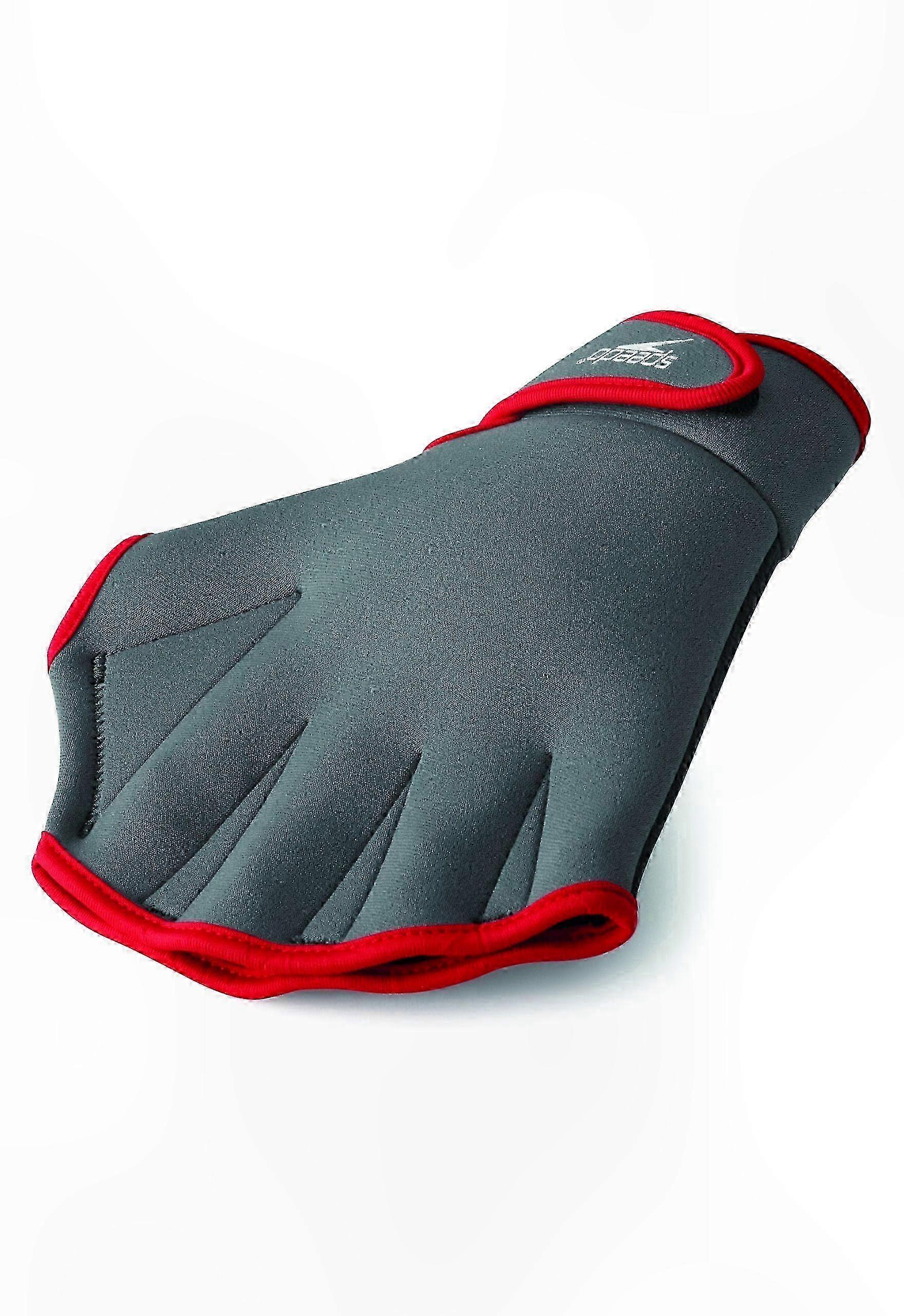 X-Large Aqua Fitness Gloves for Swim Training, Coal and Red