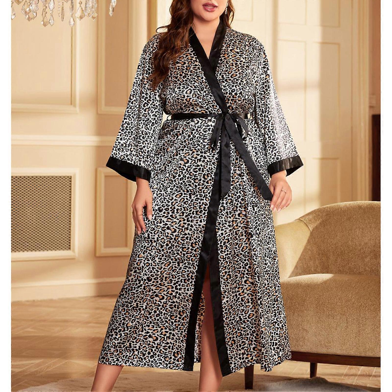 Lady Long Robe 3XL Black White Print V Neck Tie Waist Pajamas