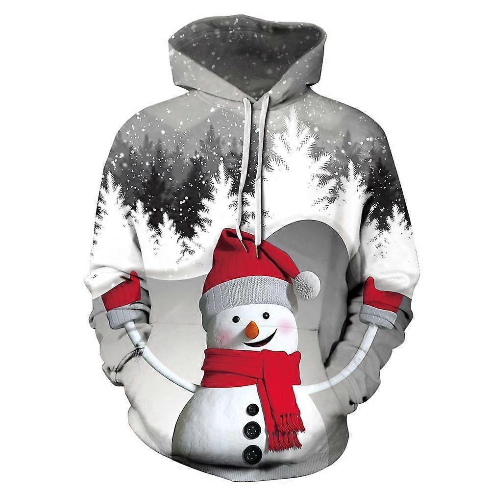 3D Digital Print Snowman Cartoon Hooded Sweatshirt Loose Fit