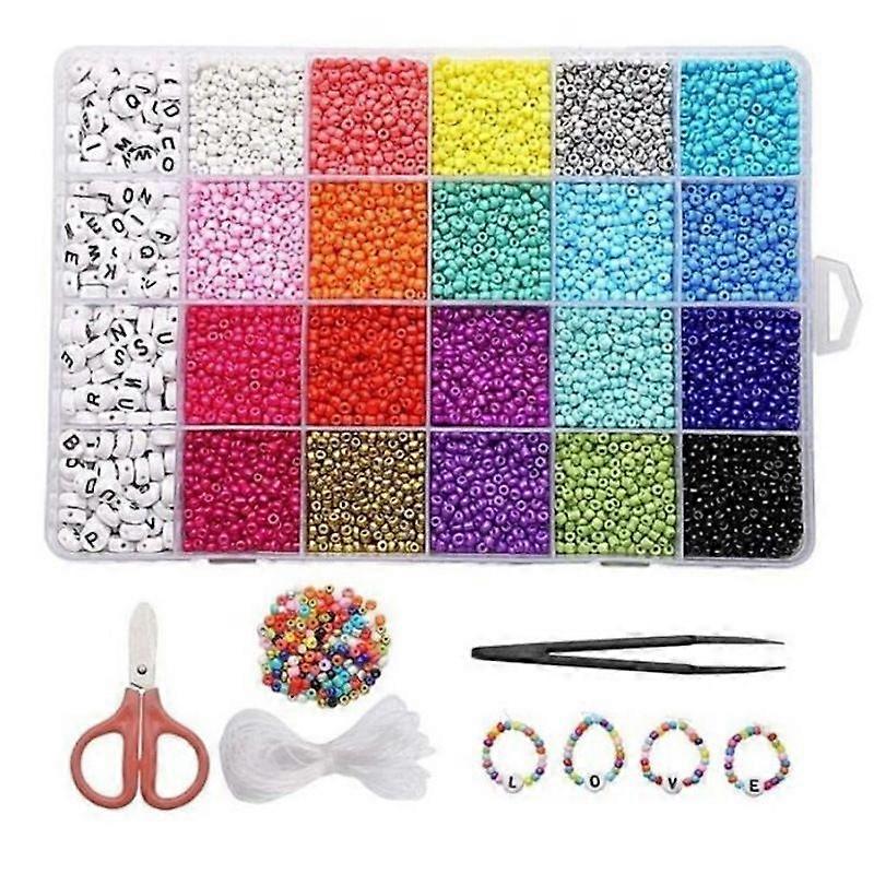20 grids of 3mm rice beads, 500 beads per grid4 grids of white-on-black alphabet beads, 70 beads per grid10,280 beads total10-meter bundle of elastic cordExquisite packaging: Our beads are individually packaged in a transparent box with separate compartments, making it easy to find the beads you need and convenient for storage and portability. A perfect gift: An ideal gift for friends, family, and children for birthdays, Christmas, Thanksgiving, and other special occasions. Parents can create bracelets with their children to strengthen their bond, foster creativity, and help them recognize colors. Versatile: The colorful alphabet and flat beads are perfect for making bracelets, necklaces, earrings, keychains, anklets, and more, adding a touch of flair to your jewelry designs. They can also be used to create personalized jewelry for friends and family to express your love.