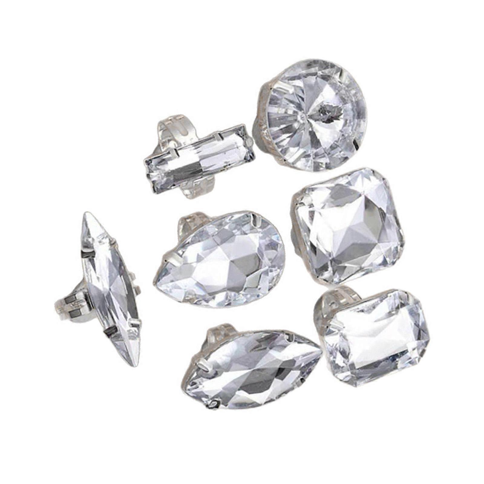 7PCS Set Oversized Geometric Rhinestones Ring Sparkling Waterdrop Jewelry Set Statement Rings For Party Accessories Multicolor
