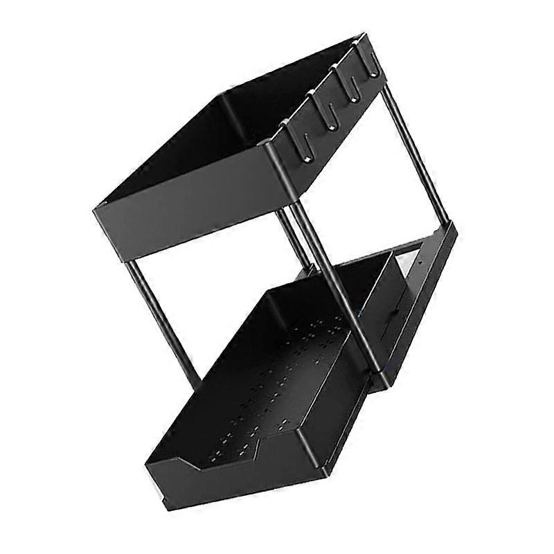 2 Tier Black Stainless Steel Pull Out Spice Rack 33.5cm Slim Organizer