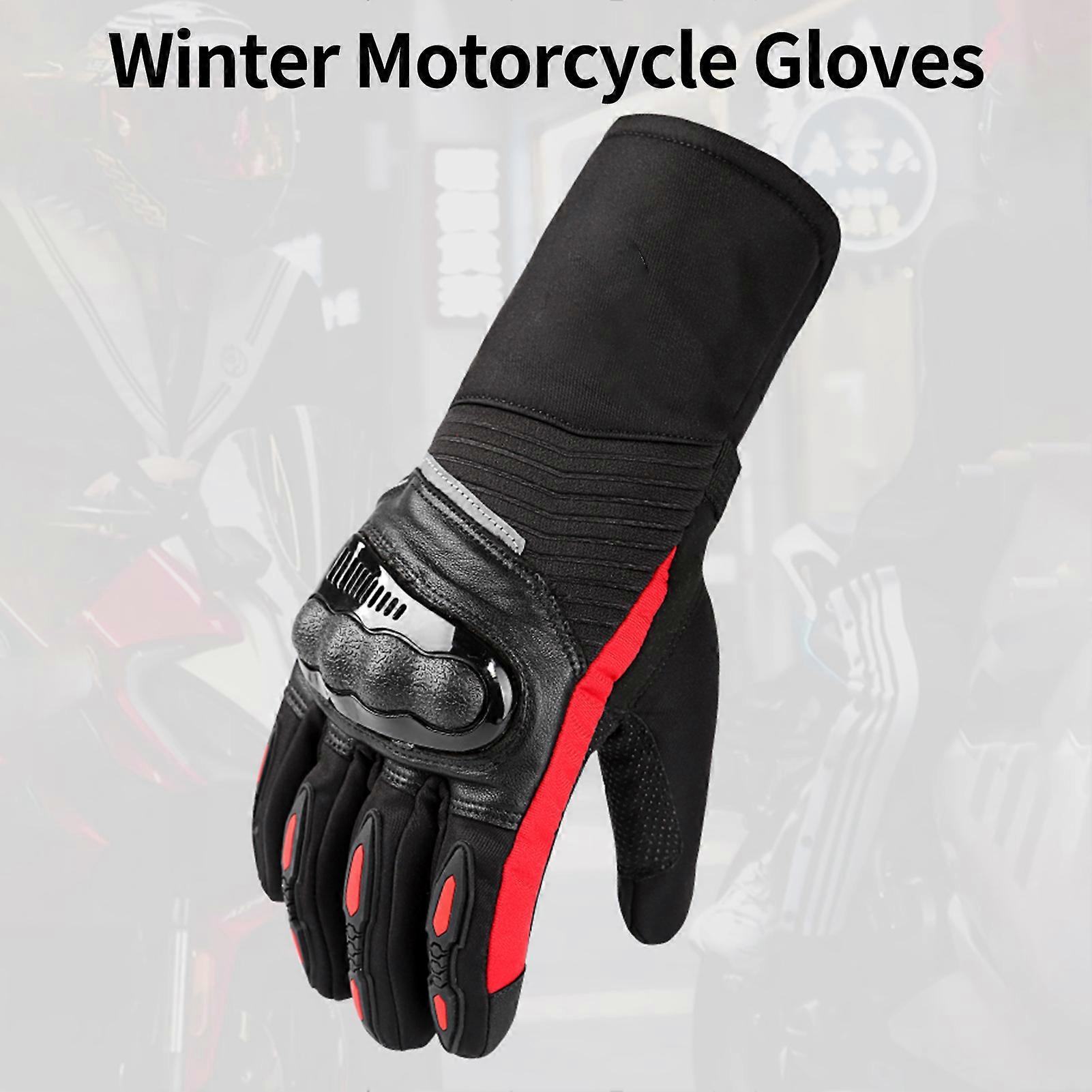 Winter Motorcycle Gloves Waterproof Cold Weather Motorcycle Gloves Warm Riding Gloves Features: Touch screen design: Double finger touch screen design, no need to frequently remove gloves during Cycle. Anti slip and waterproof: Anti slip and waterproof design, which increases hand grip and provides better control performance. At the same time, gloves also have waterproof function, which can effectively prevent rainwater infiltration and keep hands dry. Cold weather warmth: The gloves are designed with plush interior to provide additional warmth and effectively resist the impact of cold weather on the hands, making you feel warm and comfortable during winter Cycle. TPU casing: Providing additional protective functions that can effectively reduce the risk of hand injury and provide safer conservation for motorcycle riders. Collision conservation: Gloves have collision conservation function and are made of high-strength materials, which can effectively reduce the possibility of hand injuries and provide more comprehensive conservation for cyclists. Specification: Item: Winter Motorcycle Gloves Main Color: Black Material: Polyester, Microfiber Package Size: 35*10*3cm Package Weight: 220g Package List: 2* Winter Motorcycle Gloves