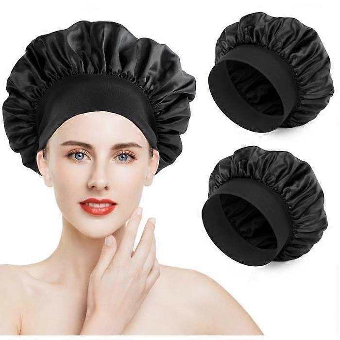 Satin Hair Bonnet Night, 2Pcs Silk Bonnet Satin Bonnet Night Cap Silk Hair Bonnet Night Silk Bonnet Women Elastic-Wj