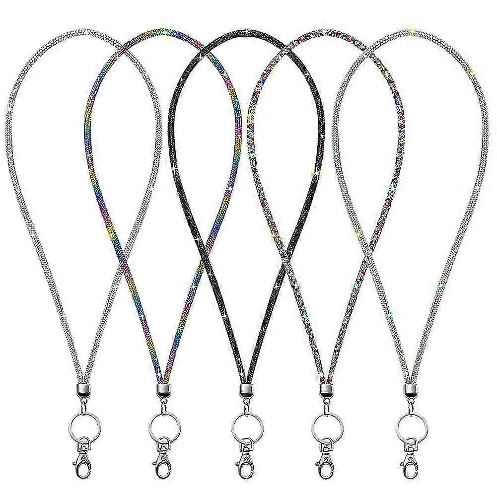 Rhinestone Office Lanyard with 31.5'' Bling Neck Strap, Metal Clasp Keyring & Crystal Decor, 5 Pack - for Women's ID Cards & Keys