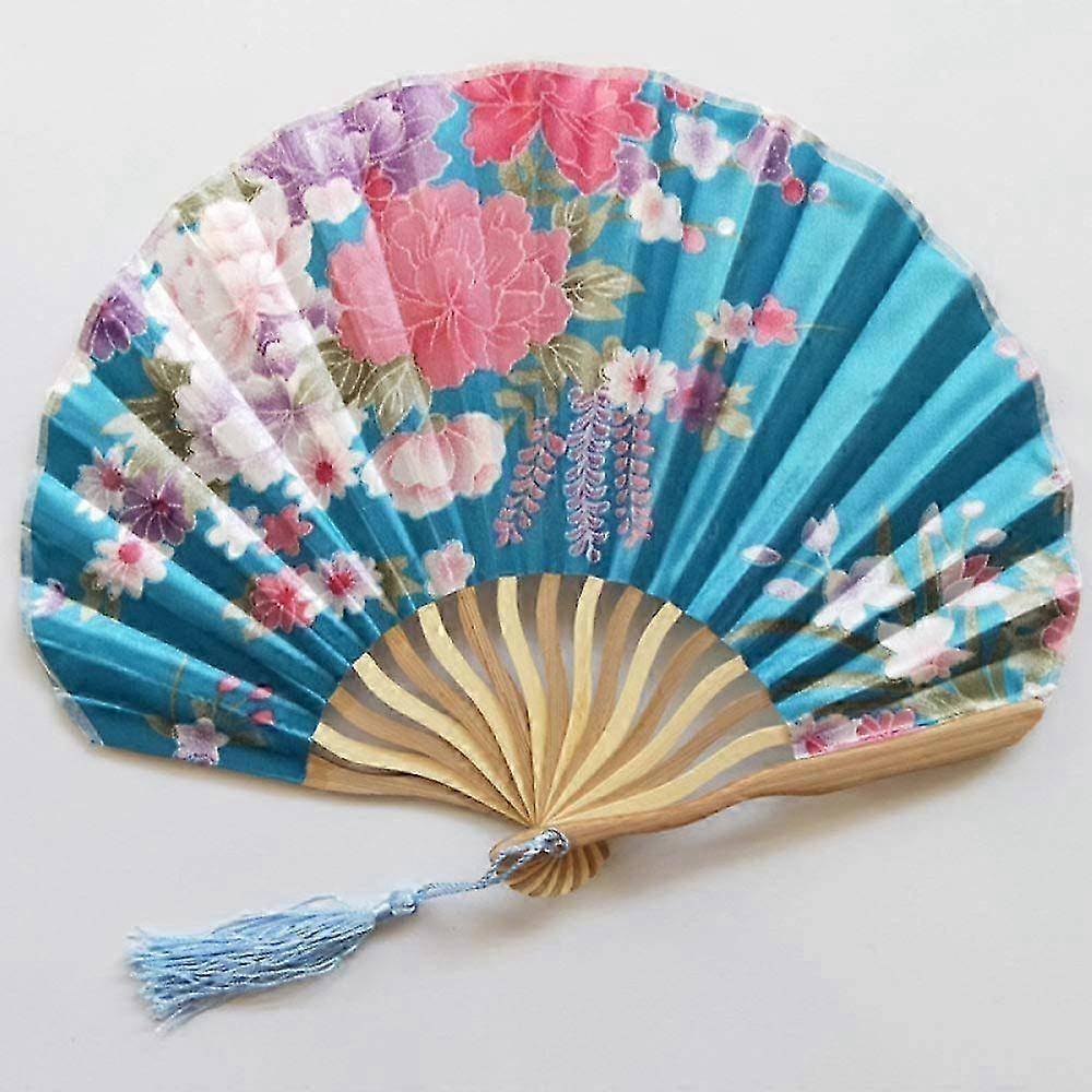 Bamboo Silk Fan with Blue Tassel for Wedding Gift