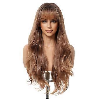 Brown Curls with Bangs Machine Made Heat-Resistant Glueless Wear and Go Wig - Natural Look for Daily Wear