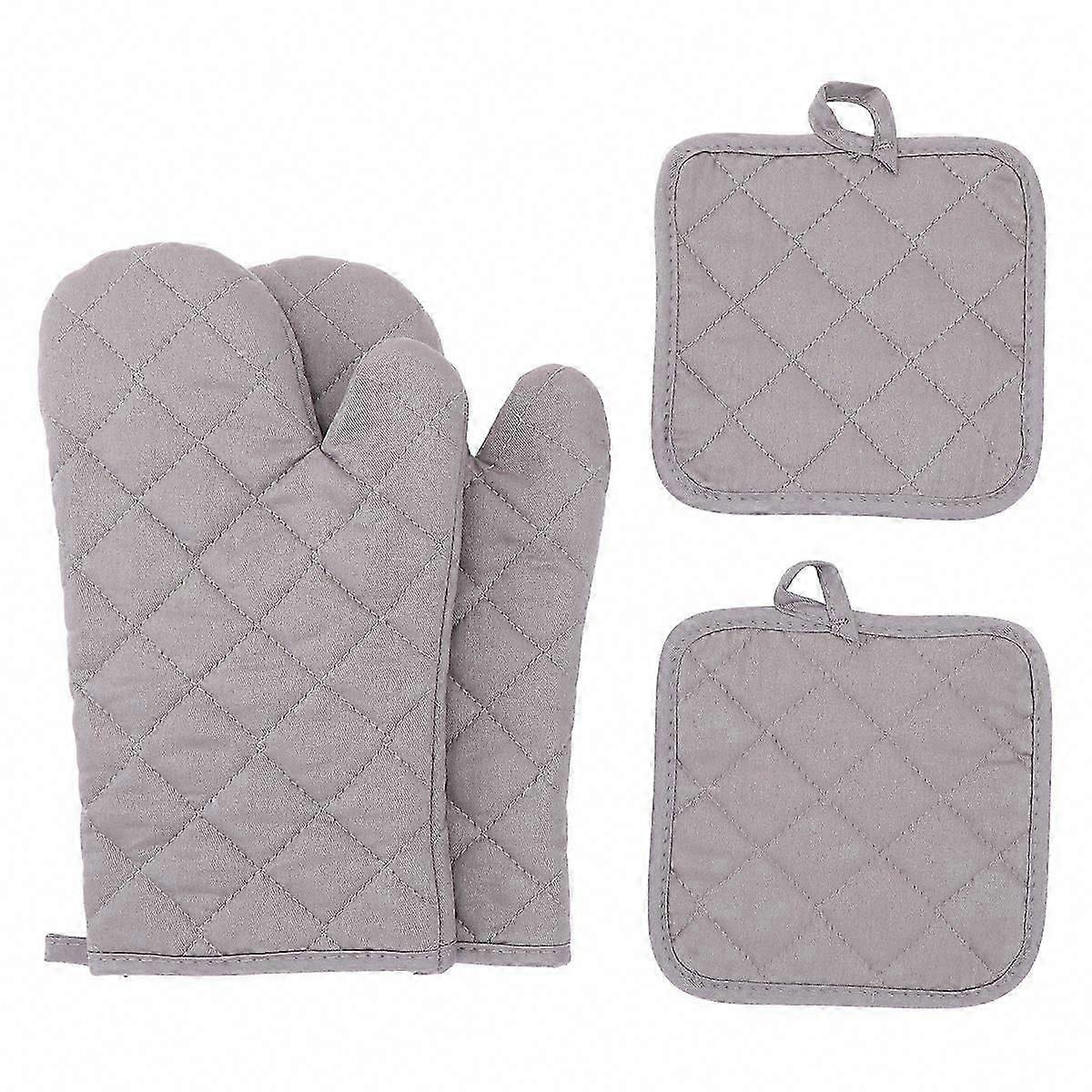 4-Piece High Heat-Resistant Oven Mitts & Pot Holders Set, 500 Extra Thick Long Cotton Kitchen Gloves, 12 Inch Grey