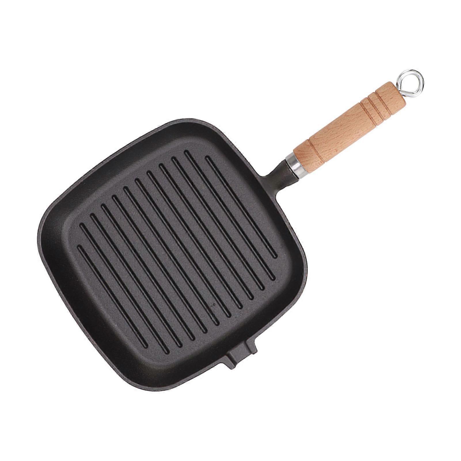 Cast Iron Skillet 20.8cm Square Grill Pan with Wooden Handle