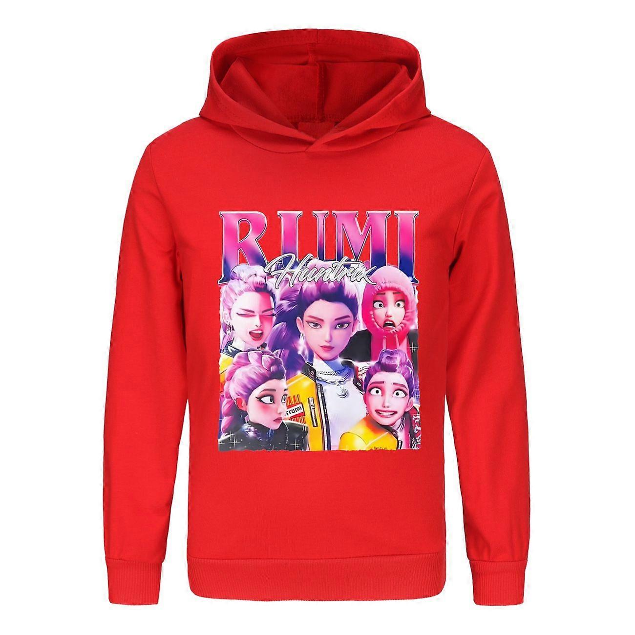 KPOP Demon Hunters Hoodie Kids Girl Women HUNTRX Hoody Sweatshirt Pullover Jumper Top (Red)