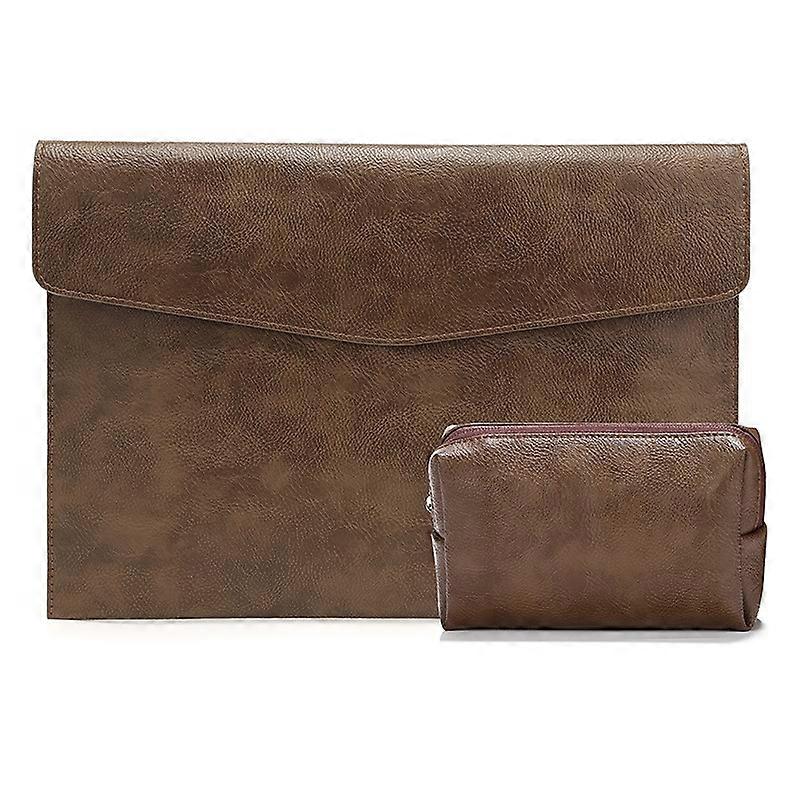 (New) PU Leather Litchi Pattern Sleeve Case For 14 Inch Laptop, Style: Liner Bag + Power Bag (Dark Brown) Liner Bag + Power Bag (Dark Brown)