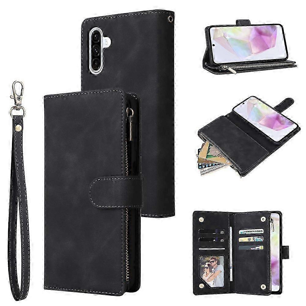 Compatible For Samsung Galaxy A17 Case Zipper Wallet Multiple Card Slots Leather Phone Cover With Wrist Strap