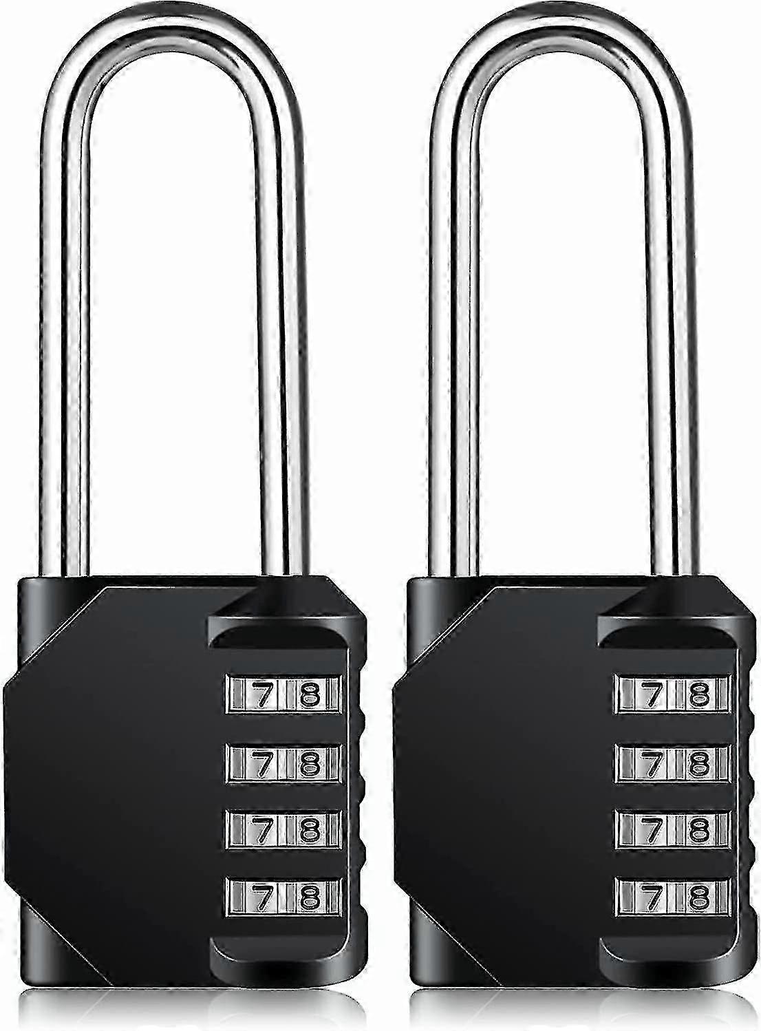 Durable MaterialThe combination padlock features a metal body with zinc alloy cover for durability and enhanced corrosion resistance. The heavy-duty steel shackle offers extra cutting resistance. Protective weather finish prevents freezing and jamming Long Shackle Weatherproof Design2.5 inch long shackle padlocks allows securing in tighter spots. Ideal for securing sheds, gates, chains, garages, cupboards, toolbox, bikes and gym locker. weatherproof padlock suitable for outdoor and extreme weather environments. High Security Lock4-digit combination padlock offers 10000 combinations, which make it much more security than the typical three digit lock, The shackle of this lock is strong enough that and it hard be damaged by human force. Easy to UseEasy to set and reset your own 4-digit combination for keyless convenience. Unique side window enable easy combination viewing. Come with a clear instruction. Once youve set the combination, youre safe and sound. No more fiddly keys. Specifications: Material: hardened steel and zinc alloy Colour: Black Diameter of shackle: 6mm Weight: 139g Size: 116*44mm Ressetable padlock What You Get 2 X Long shackle padlocks