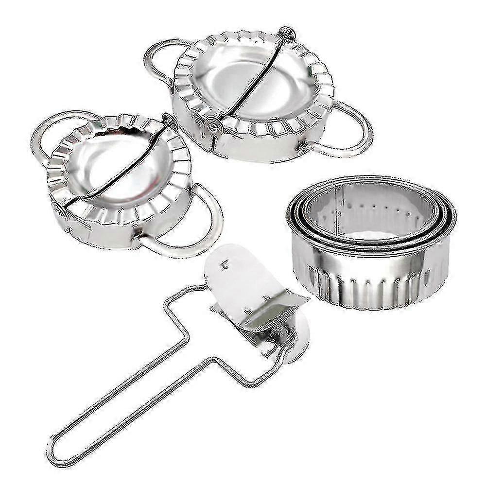 6pcs Dumpling Makers Set: 1 Large & 1 Small Mold, 1 Dough Cutter, 3 Wrapper Molds, Stainless Steel Kitchen Gadgets