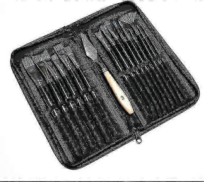 JINXIU Brushes of all shapes: with 15 different brushes, you will always find the right one to create the perfect painting. The set includes detailed contour brushes, flat brushes, bevelled brushes, cats tongues (hazelnut), round and scalloped brushes. We are confident that with this range of brushes you will always be able to achieve the painting you want. It is perfect for beginners and professionals alike and can be used for any type of painting. With the storage case, not only is it easy to store your suit, but you can also travel to paint anywhere. The brush set can be used for all painting techniques in the hobby, such as acrylic, oil, watercolour, wash or watercolour. Ideal for art classes at school or as a hobby at home. Discover a colourful world and let your creativity run wild. The beginner brush set with accessories is ideal for artists. Main materials: wood, nylon, stainless steel. Colour: black Handle material: wood (black painted surface) The nylon bristles do not get clogged or pulled during the painting process. Brushes remain soft and flexible after cleaning. Brushes do not come off after cleaning. Size:approx. 19-24cm in length Package includes. 1 set of brushes (15 pieces) 1 storage bag 1 squeegee