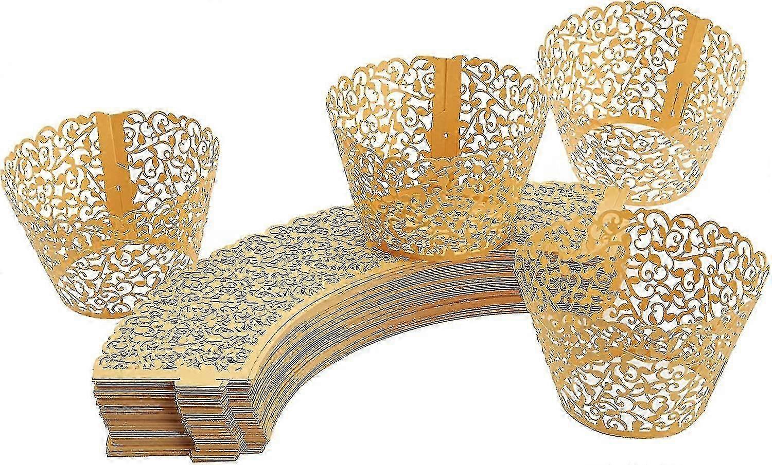 DECORATIVE LACE CUPCAKE LINERS: These filigree wrappers are made of decorative hollow art paper with a floral lace design.STYLISH: Allows you to add your own dcor to cupcakes, muffins, sweets, cakes, chocolate desserts and much more.CREATIVE: Give your parties, weddings, birthdays, family gatherings, baby showers and Christmas celebration dinners a sophisticated touch.WARNING: Do not place wrappers in the oven. They are not heat resistant.DIMENSIONS: Base diameter: 2 inches; top diameter: 3.1 inches; Height: 1.96 inchesProduktbeschreibung Color Name:GoldIts time to add a real sense of classic sophistication and elegance to your birthdays, Christmas parties, weddings, family gatherings and outdoor events with this pack of 7 Gold Lace Cupcake Wrappers allowing you to add your own dcor to cupcakes, muffins, sweets, cakes, chocolate desserts and much more. Be the life of the party and ensure everyone remembers your event with these elegant cupcake wrappers.