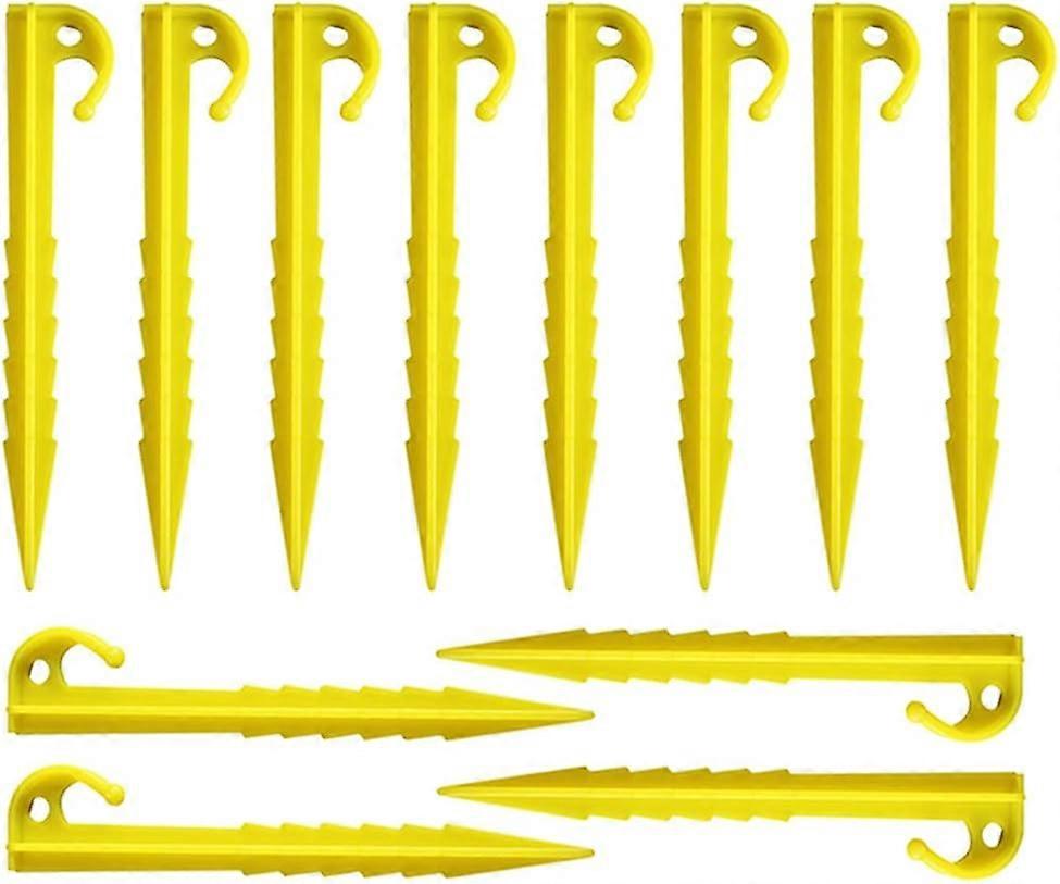 Outdoor and garden netting on lawns yellow garden landscape pegs suitable for camping 12 pieces 5.7 inch plastic tent pegs with serrated edge